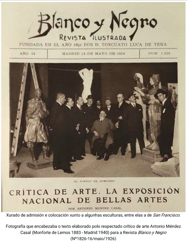Este ano cúmprense 100 anos da concesión dunha Medalla de Primeira Clase, ou medalla de ouro, na Exposición Nacional de Belas Artes á obra San Francisco do escultor Francisco Asorey, un galardón que entón supoñía o recoñecemento oficial para un artista en España.