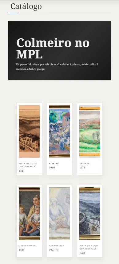 Co obxectivo de aumentar a visibilidade das coleccións custodiadas no MPL, tanto as da exposición estable como as de reserva, poñendo en valor o noso patrimonio cultural a través de ferramentas dixitais e recursos de Omeka, ofrecemos unha serie de mostras de bens culturais en liña que contribúan a difundilo e coñecelo.
