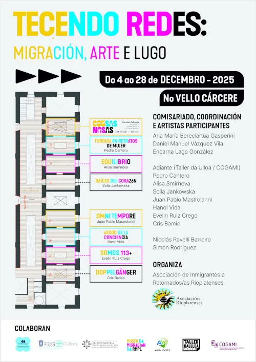 O proxecto “Tecendo Redes: Migración, Arte e Lugo” é unha iniciativa que sitúa a arte como linguaxe intercultural e ferramenta de cohesión social. Esta proposta encádrase dentro do programa da Rede Museística Provincial de Lugo (RMPL) “COUSAS NOSAS: Dereitos culturais en acción. A educación e a cultura de paz”, buscando consolidar Lugo como un espazo de convivencia, creatividade e reflexión colectiva. O proxecto promove o encontro entre comunidades diversas, visibilizando as experiencias migratorias e fomentando redes de diálogo, integración e respecto.