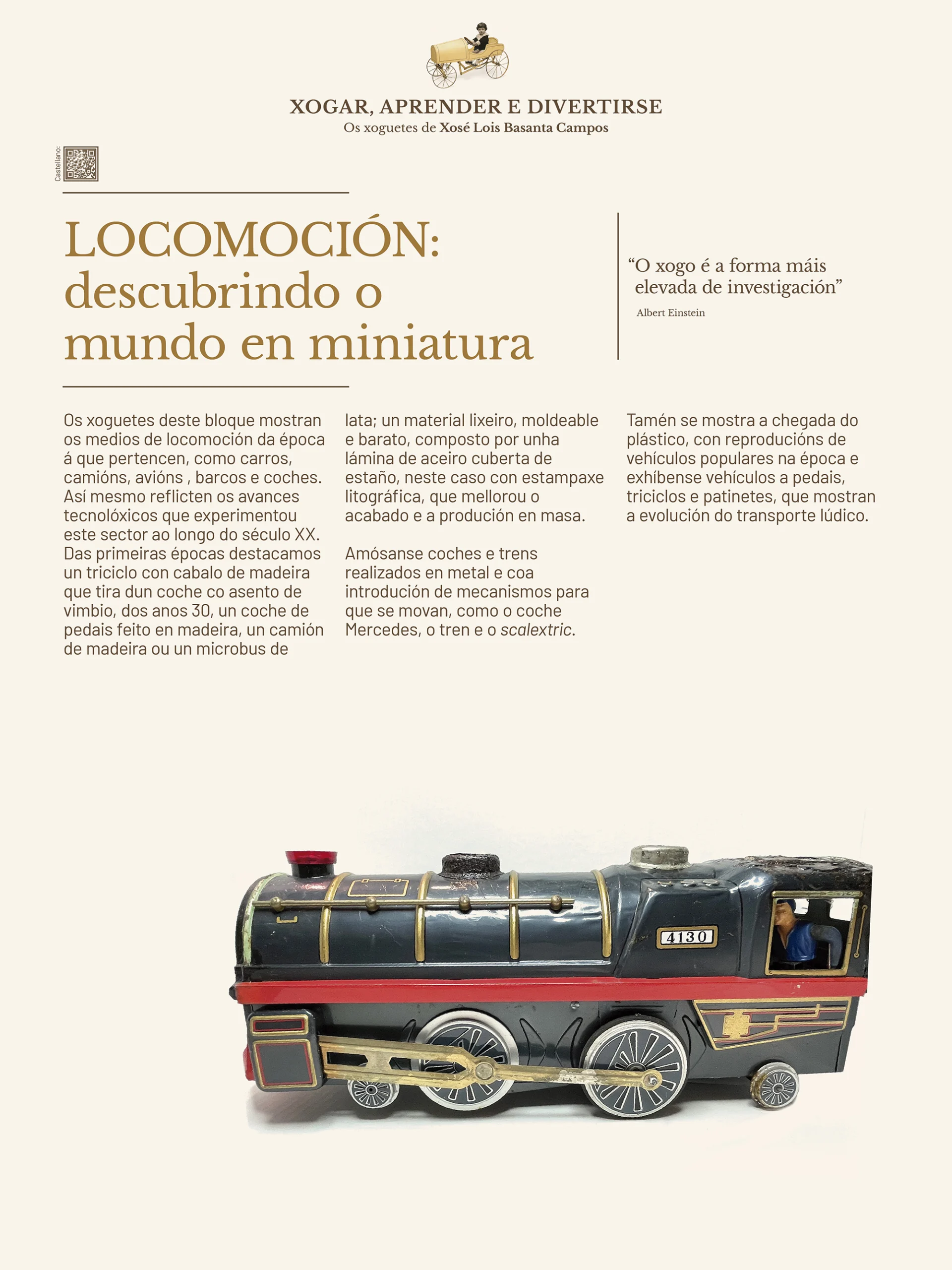 O Museo Provincial de Lugo (MPL) presenta unha nova exposición temporal, enmarcada no seu programa de “Coleccionismo e museos”, co obxectivo de difundir os fondos que alberga. A mostra exhibe a colección de xoguetes doada polo fonsagradino Xosé Lois Basanta Campos (1924-2016), ofrecéndonos unha viaxe no tempo que comeza na década de 1920 que nos axuda a comprender a evolución dos xoguetes, das modas, dos avances tecnolóxicos e dos cambios sociais.