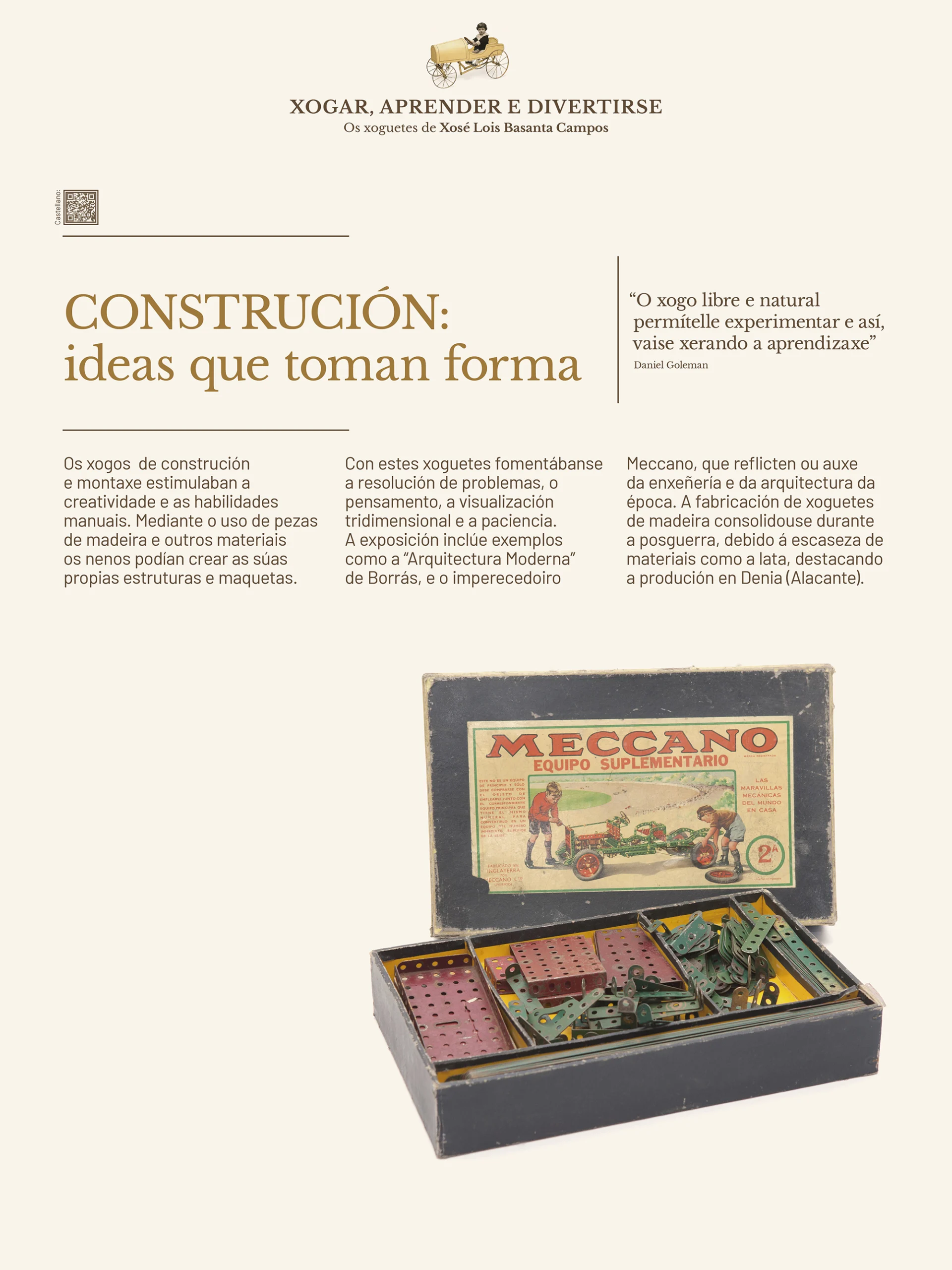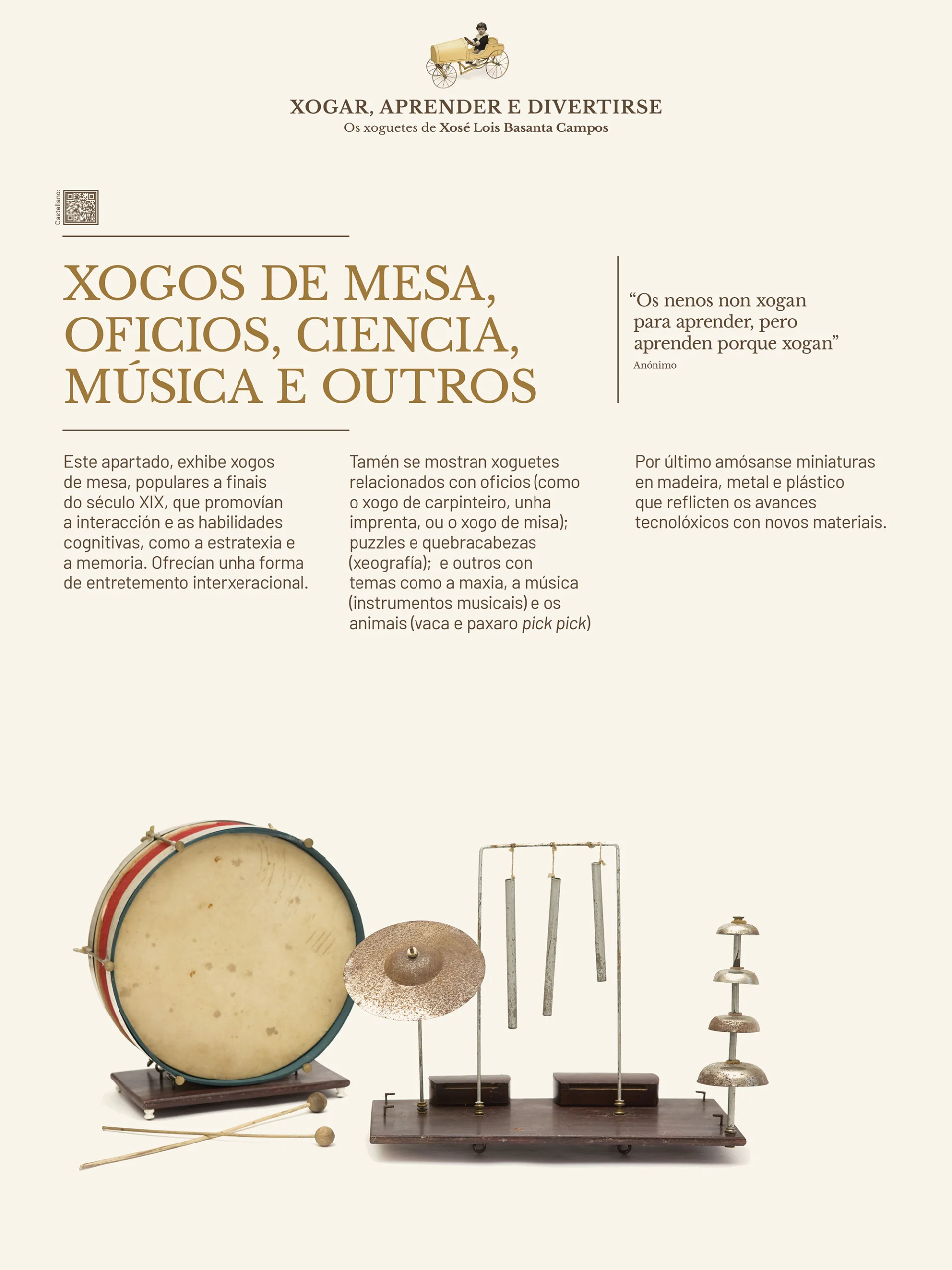 Ademais de documentar a historia do xoguete, a exposición tamén pon en valor a doazón de Xosé Lois Basanta e destaca o papel dos particulares na conservación e incremento do patrimonio colectivo. Así, garante que as futuras xeracións poidan coñecer e entender a infancia de épocas pasadas.