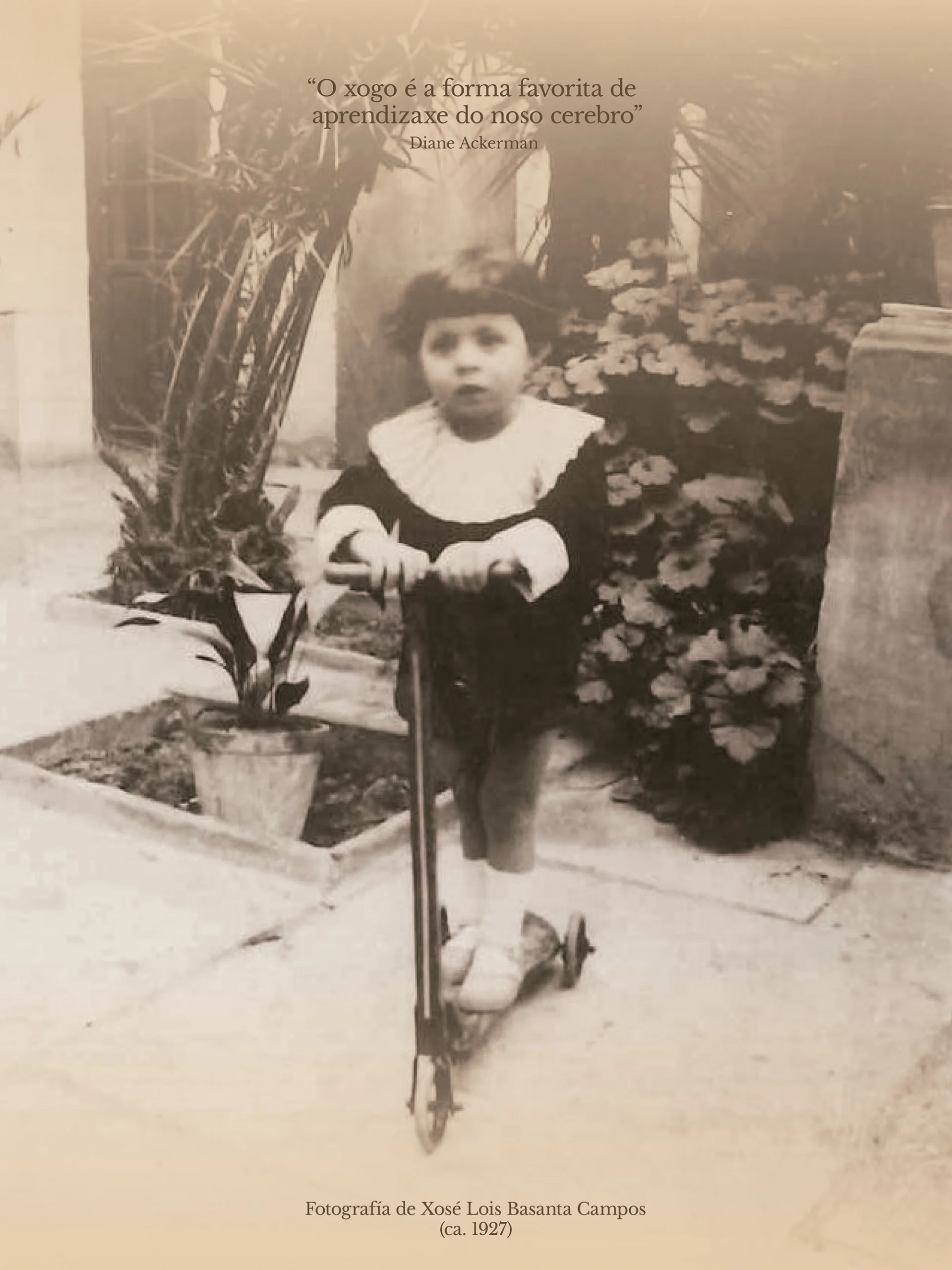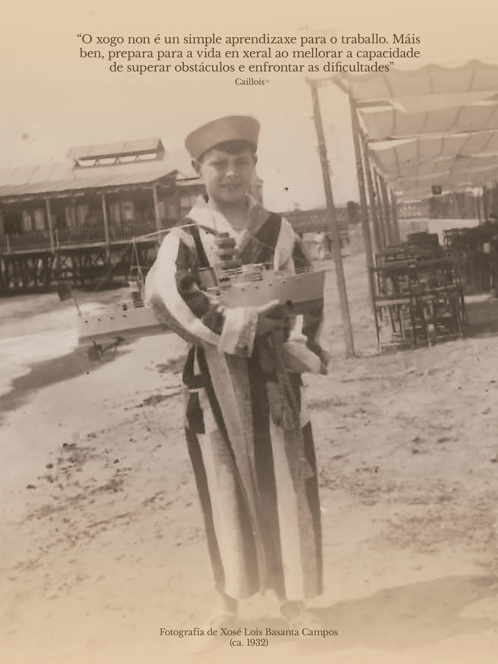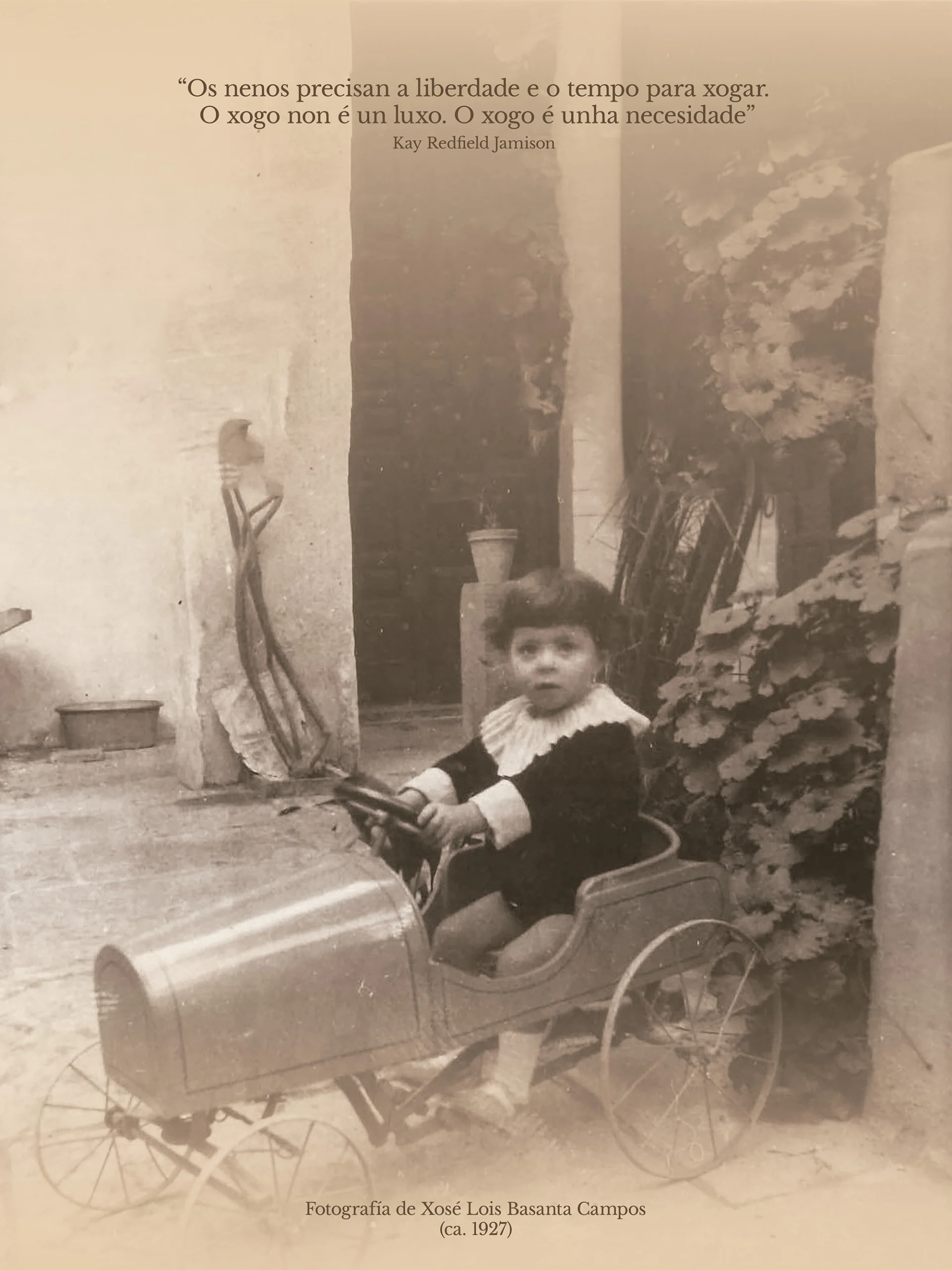 O xogo, entendido como unha actividade non obrigatoria que potencia habilidades cognitivas, físicas, creativas, sociais e emocionais, ocupa un papel central e vertebrador na exposición. Tal como o define a Real Academia Galega (RAG), é “cada unha das actividades que se realizan co único fin de entreterse e divertirse, e que se caracterizan por estar organizadas conforme a unhas regras determinadas e, ás veces, por precisar duns obxectos concretos”. Os xoguetes de Basanta exemplifican esta definición, converténdose en símbolos da nenez da súa xeración, en concreto da infancia dun neno da provincia de Lugo pertencente a un contexto social e cultural específico.
